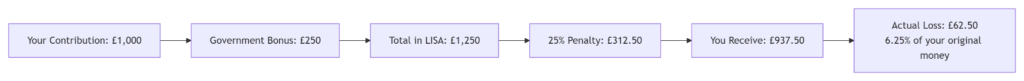 Ask most LISA holders about the penalty, and they’ll confidently state “25%.” Few realise they’re quoting the wrong figure. The government’s 25% charge applies to the total withdrawal amount, creating a mathematical reality that sees savers losing their own money.